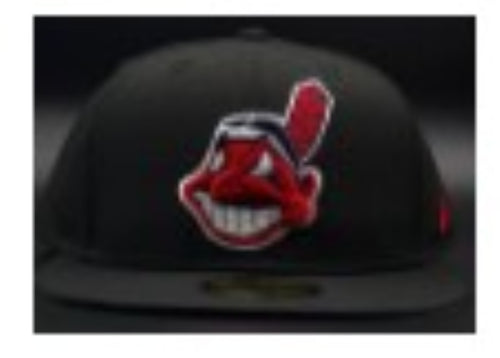 Cleveland Guardians (Indians) Navy and Red Chief Wahoo (Official On-Field Cap) Black Brim 59FIFTY Fitted Hat